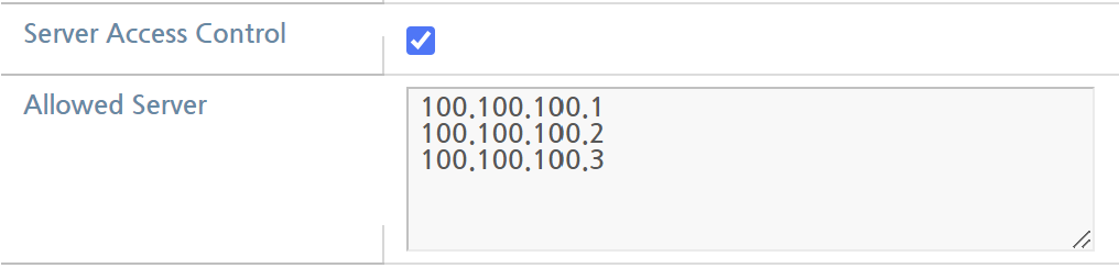 결론: 현재 Allowed Server에 '100.100.100.200' 으로 허용해두었기 때문에 그 외 IP는 모두 차단 됩니다.