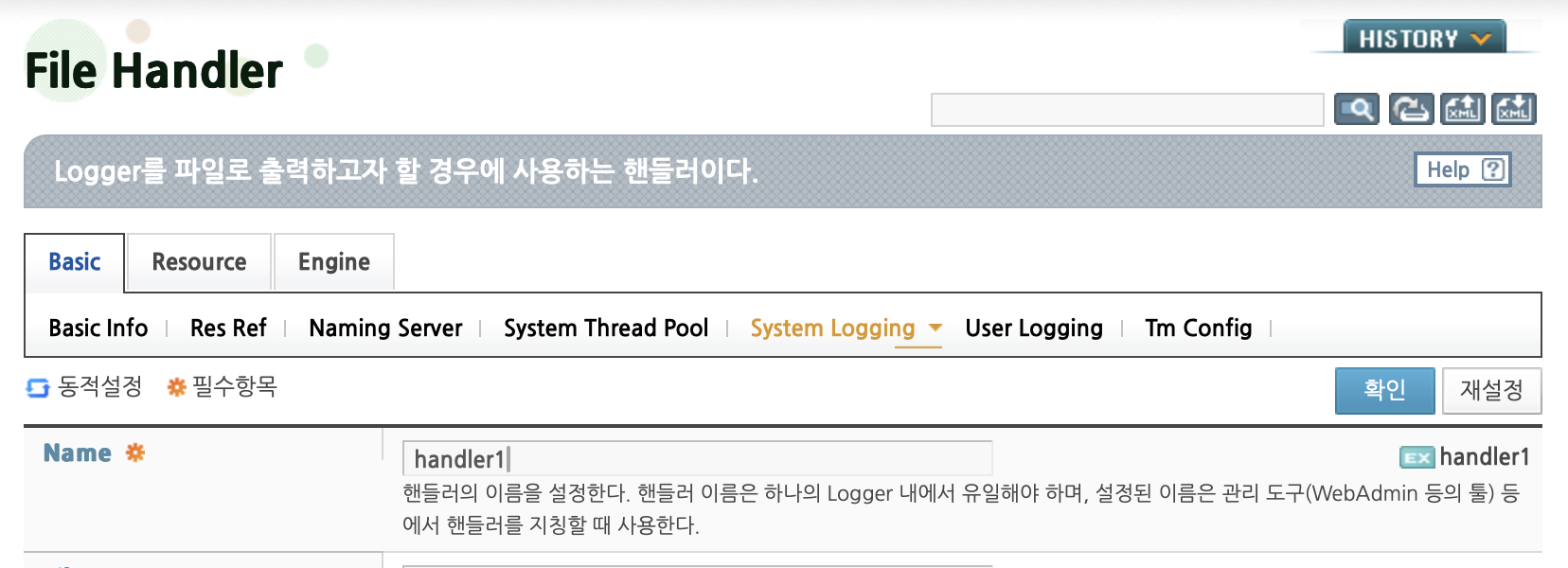 # webadmin > Servers > 해당 Managed Server > System Logging > jeus.session > FILE HANDLER
