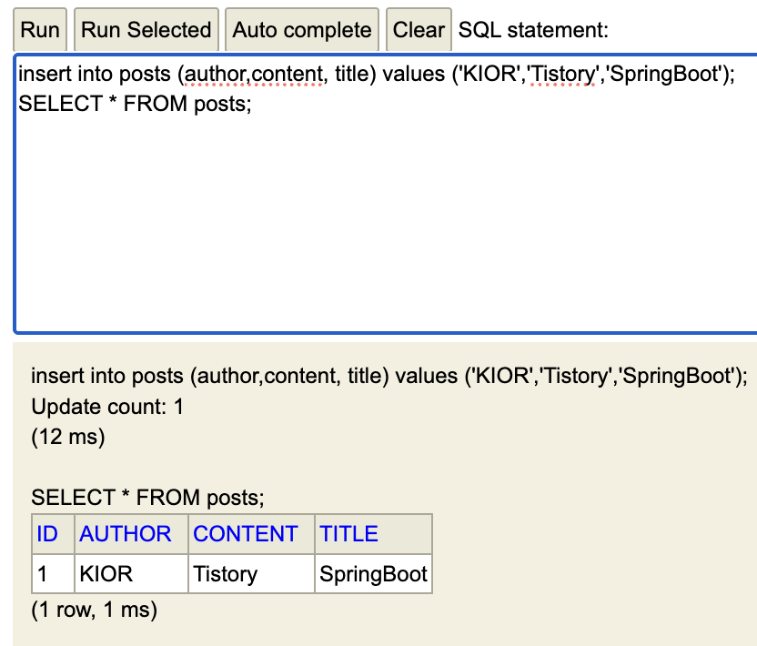 API 호출 후, 실제로 데이터가 잘 저장되었는지 확인하려면 H2 Database Console을 이용하면 아주 편리합니다.
