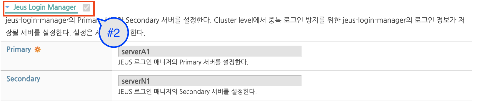하나의 서버가 장애(shutdown) 되어도 다른 서버가 Jeus Login Manager 역할을 대체 가능해야 합니다.
